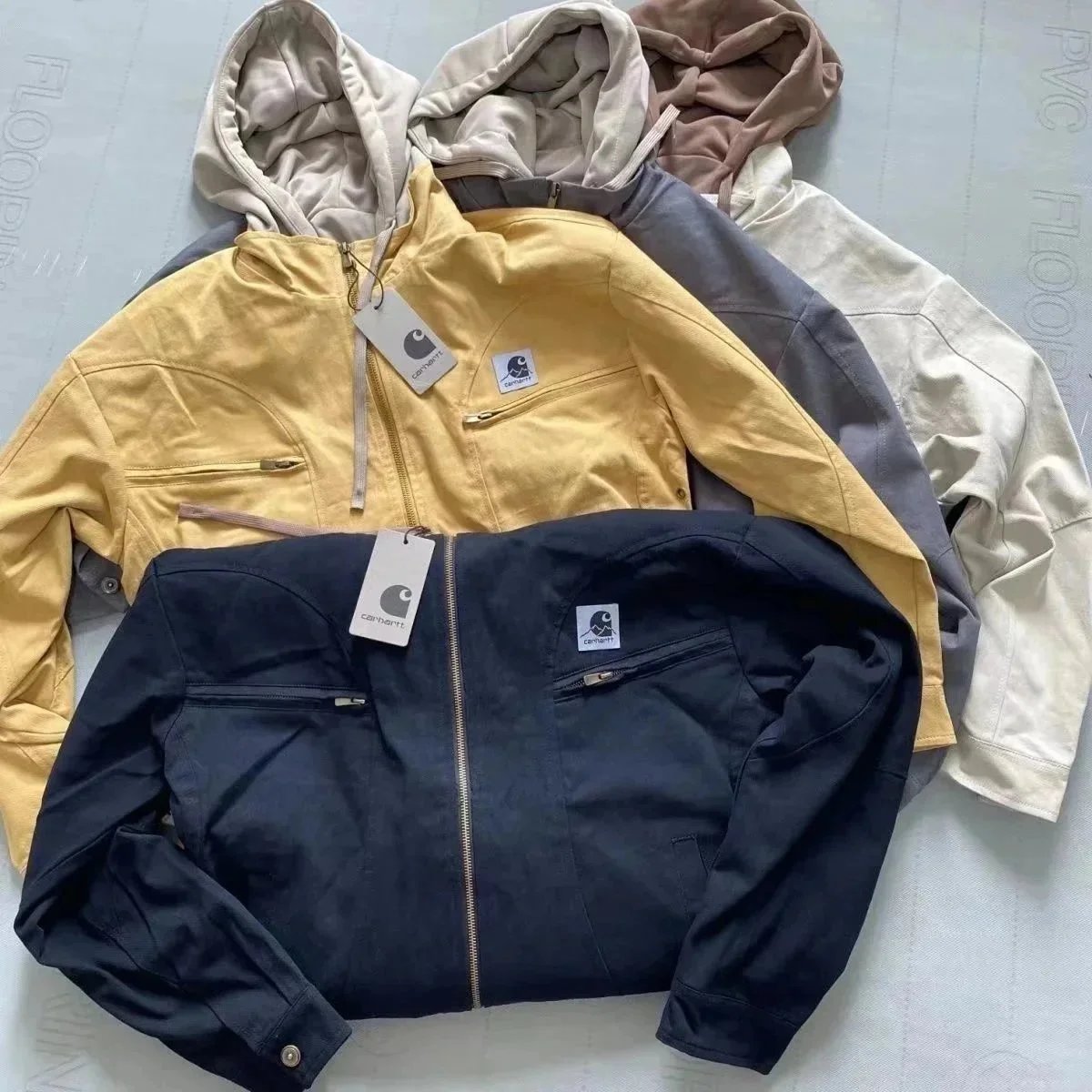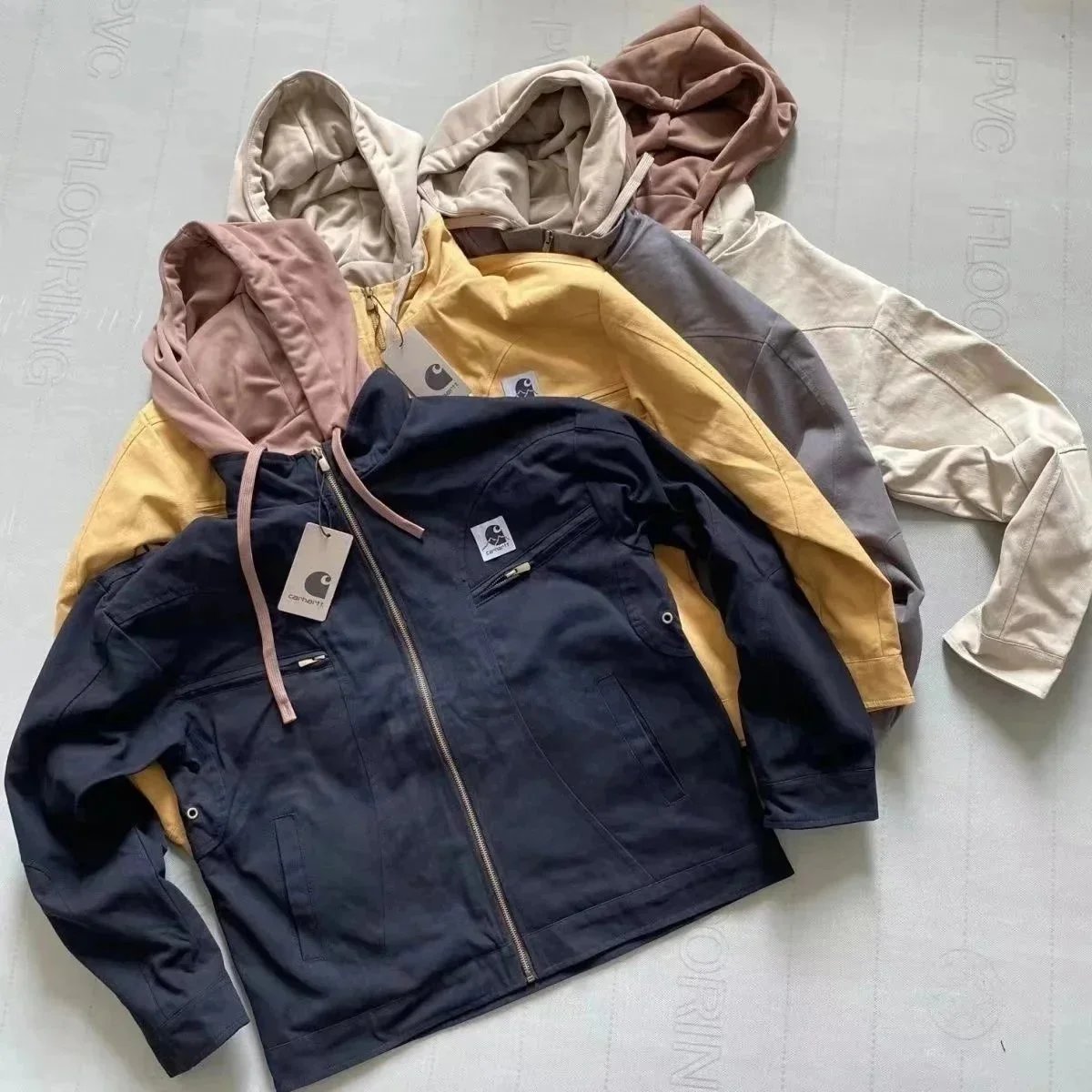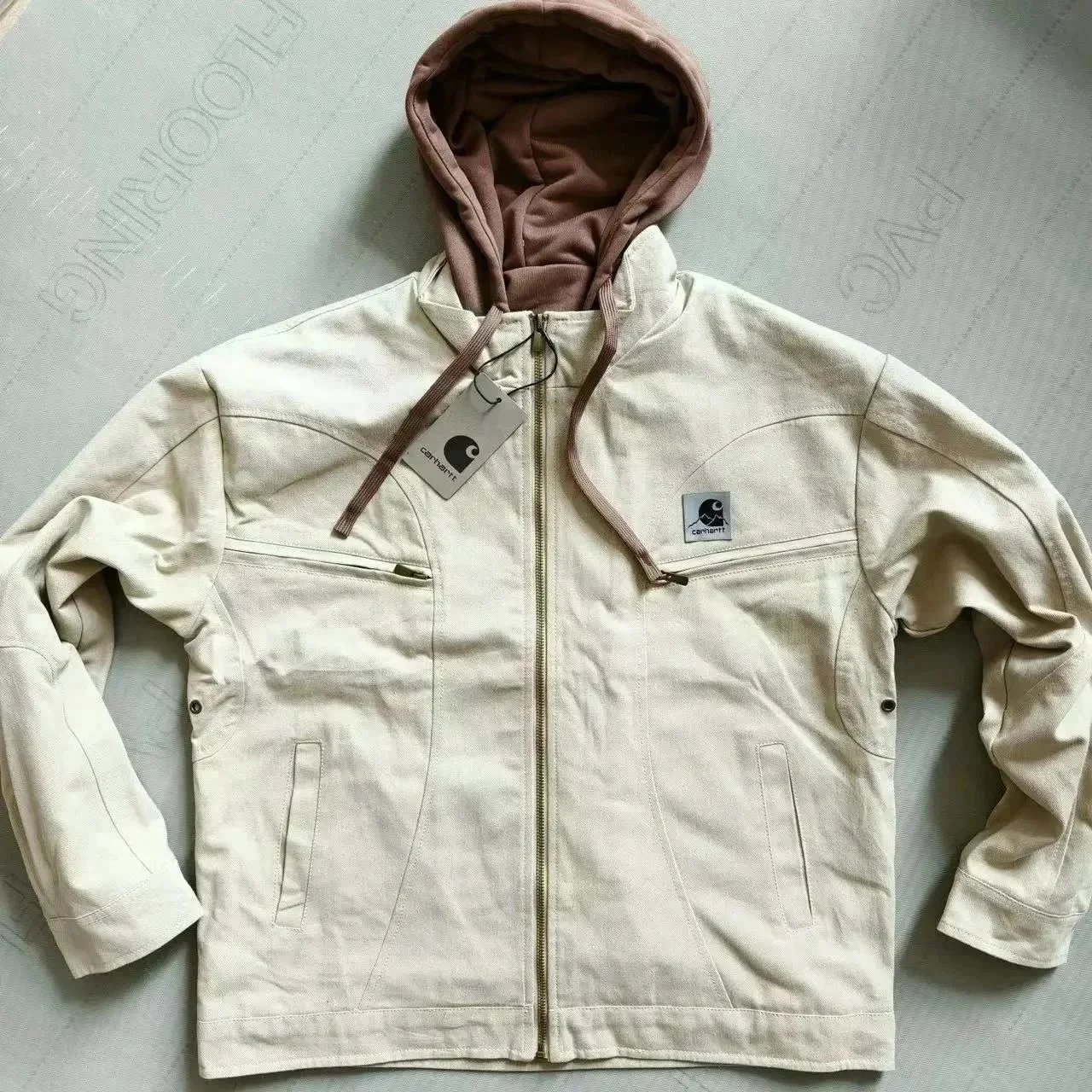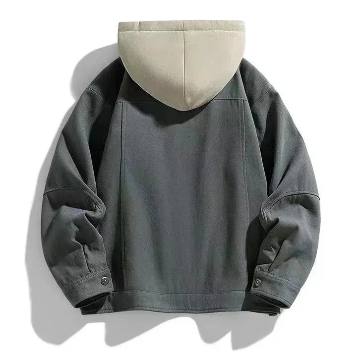 C连帽假两件套工装外套
